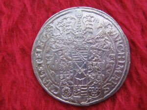 Z celé plejády těchto mimořádných exponátů zahrnujících také antické a exotické mince, nouzová platidla, groše a tolary je těžké k prezentaci vybrat alespoň jeden. Za všechny popišme minci, o které víme i přesnou nálezovou situaci. Jedná se o stříbrný tolar z roku 1565 (průměr 40 mm) saského kurfiřta Augusta Saského (1526 – 1586, vládl 1553 – 1586 společně se svojí manželkou Anne Dánskou a Norskou, která žila v letech 1532 – 1585). Na přední straně (avers) je zpodobněna stylizovaná postava kurfiřta s mečem v pravé ruce a s palcátem v levé. Na zadní straně (revers) se nachází složený velký znak saského kurfiřství. Ražba byla provedena v drážďanské mincovně mincmistrem Hansem Bienerem (1556 – 1604).